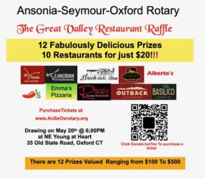 The AnSeOx Rotary Club is hosting its annual Restaurant Raffle to raise funds for high school scholarships benefiting students in Seymour, Oxford, and Ansonia.